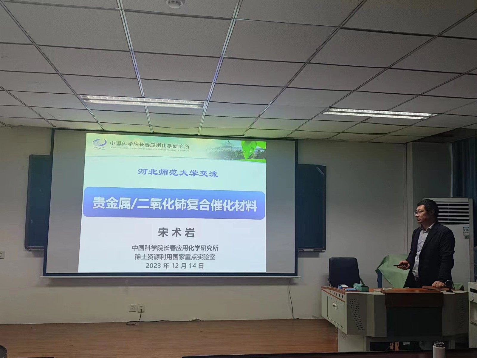 2023年12月14日上午,应糖心vlog 邀请,中国科学院长春应用化学研究所宋术岩研究员为学院师生做了题为“贵金属/二氧化铈复合催化材料”的学术报告。报告由副院长韩占刚教授主持,学院相关教师与研究生参加了本次学术讲座。